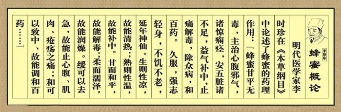 中国古代医书《神农本草》上记载:久服蜂蜜可以增强意志、轻松身体、保持青春、延年益寿。蜂蜜是绝佳的安神催眠补品,而且没有其它药物所具有的如压抑、疲惫、分神和破坏协调等副作用。有句谚语叫“长期喝蜂蜜,不会染疾病”,坚持长期食用土蜂蜜,是祛病强身的最佳选择。